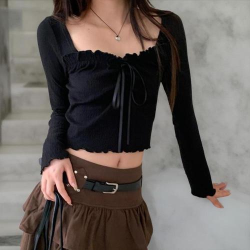 [다잇템]여성 롱슬리브 프릴 편한 코튼 탱크 티셔츠