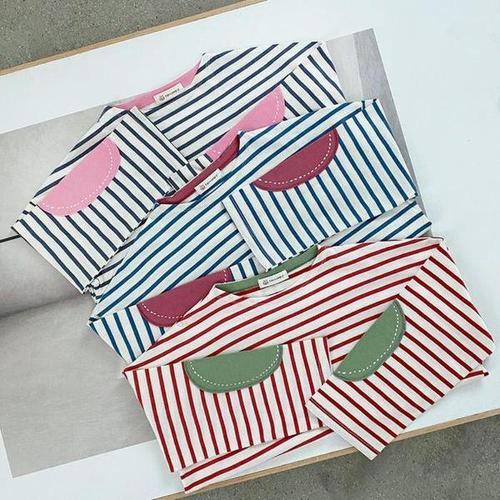 [다잇템_패션]여성 프릴 코튼 롱슬리브 단가라 라운드 티