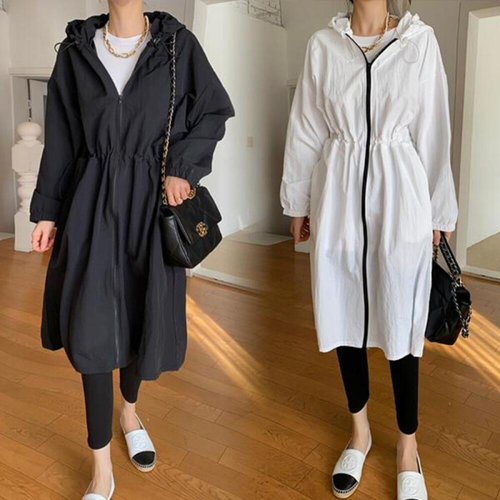 [끌레아]점퍼 사파리 자켓 잠바 봄 가을 빅사이즈 여성 M 야상 바람막이 후드 롱점퍼 롱자켓 아노락