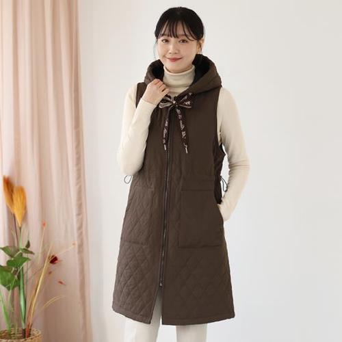 [웬디즈갤러리]후디 퀼팅 롱 베스트 / 스트링 리본 체형커버 TVT110
