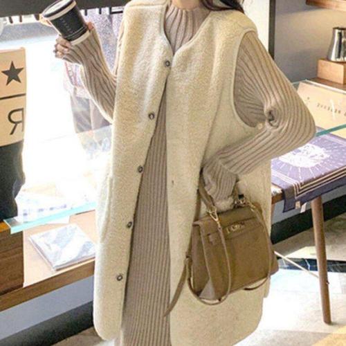 양털 후리스유행 조끼 여자 뽀글이 보온 누빔 롱 베스트