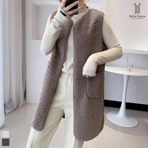 [이삐다]벨라도나 여성 겨울 양털 노카라 롱후리스 조끼 뽀글이 베스트 김장조끼 Bon-2563