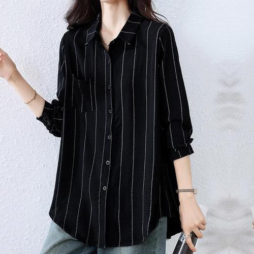 별후이 여성용 가을 빅사이즈 가디건 스트라이프 루즈핏 긴팔 롱셔츠