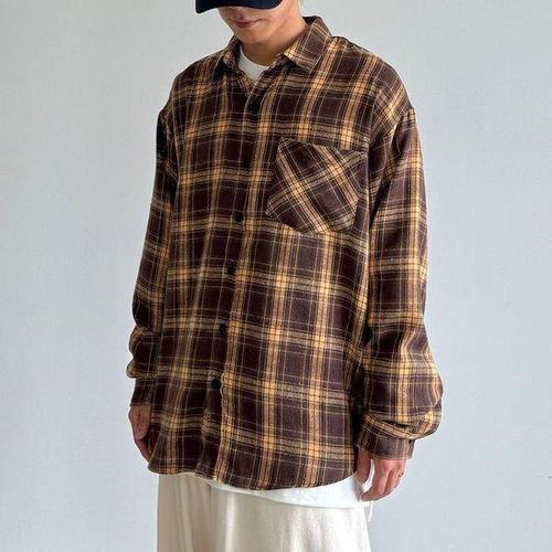 [다잇템_패션]남자 롱슬리브 격자 울남방 박시핏 셔츠