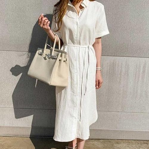 [엄지척]흰색원피스 린넨원피스 반팔 롱셔츠_19870602_667501