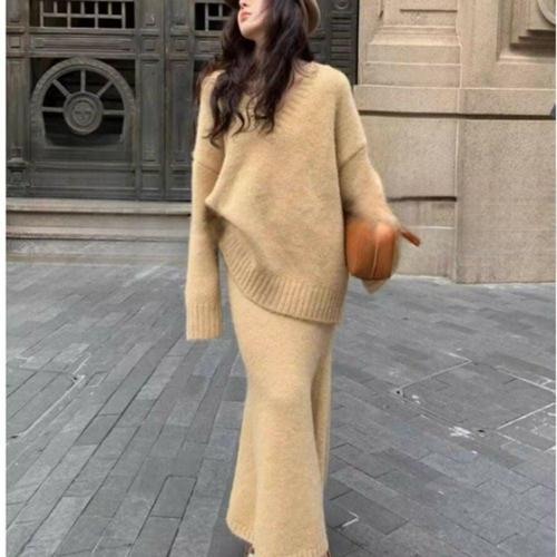 [아리엘스타일]겨울니트 롱스커트 데일리세트 노빈트니트투피스