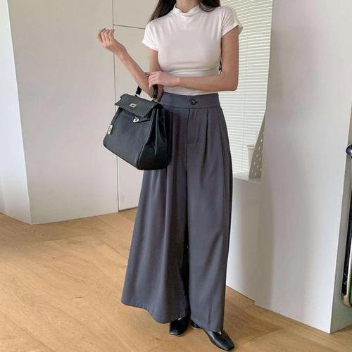 [다잇템]여자 백밴딩 와이드핏 출근룩 롱 핀턱 슬랙스