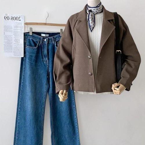 [다잇템_패션]여성 빅사이즈 단추 카라넥 롱슬리브 재킷
