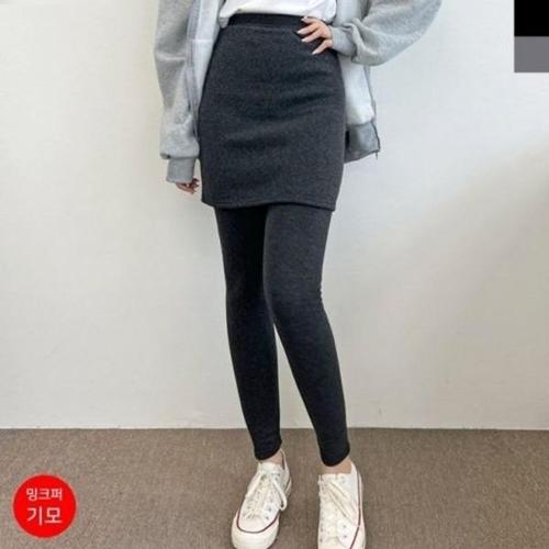 블레오 여성 겨울 밍크퍼 기모안감 5부 기모 롱치마 레깅스