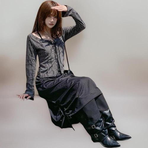|CMJ6815|여성 유니크 가죽 롱 트렌치코트 허리 스트랩