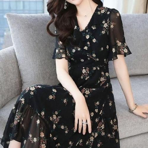 [엄지척]반팔 가을원피스 프릴 KA2 9801 롱 꽃무늬 원피스 봄_19911836_667501