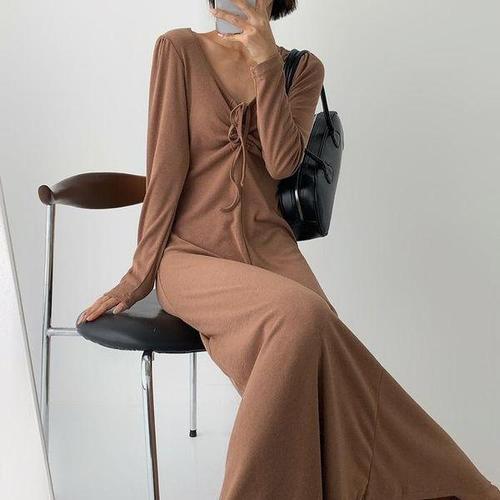 [다잇템_패션]여자 여성스러운 롱슬리브 소프트핏 롱원피스