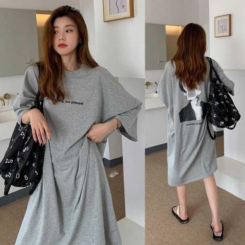 [엄지척]레터링 캐주얼 여성 소프트 반팔 롱 원피스_19951171_667501