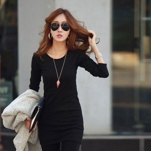 [엄지척]베이직 심플 라운드 긴팔 미니 원피스 롱티셔츠_19953467_667501