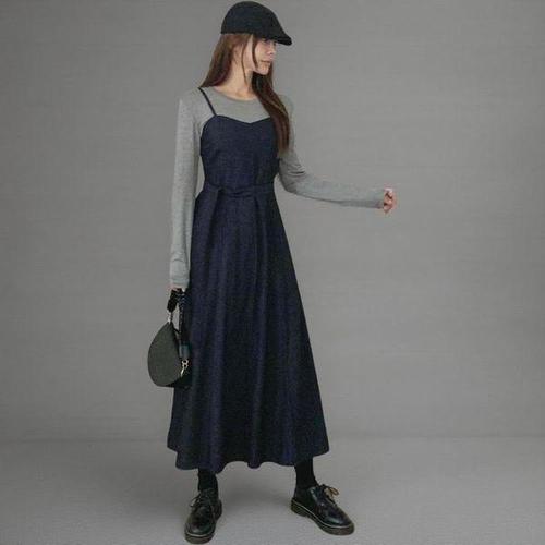 [신상오픈런]여성 플레어 롱 원피스 긴팔 티셔츠 레이어드 뷔스티에