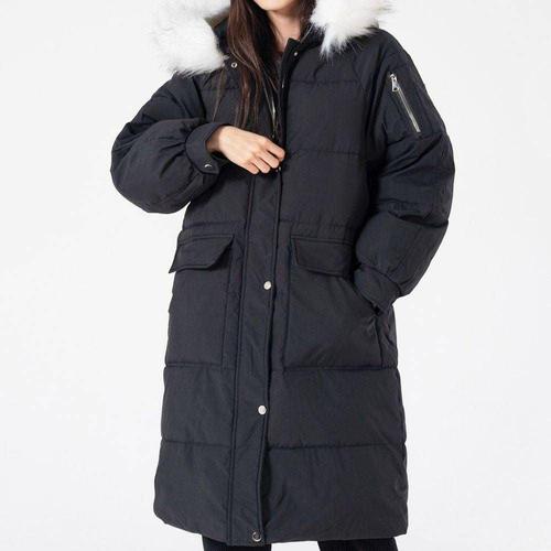 ★베스트특가★[무드무드] 모크 후드 퍼 롱 패딩
