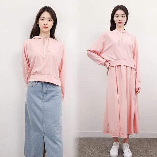 [에이치플러스몰]후드티 A라인 롱스커트 캐주얼 투피스 밴딩 레귤러핏