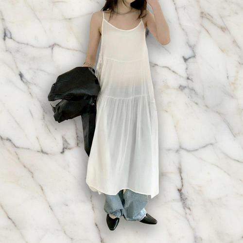 여자 여름 레이어드 슬림 스타일 민소매 베스트 롱조끼 트임롱 원피스 시스루 유니크한