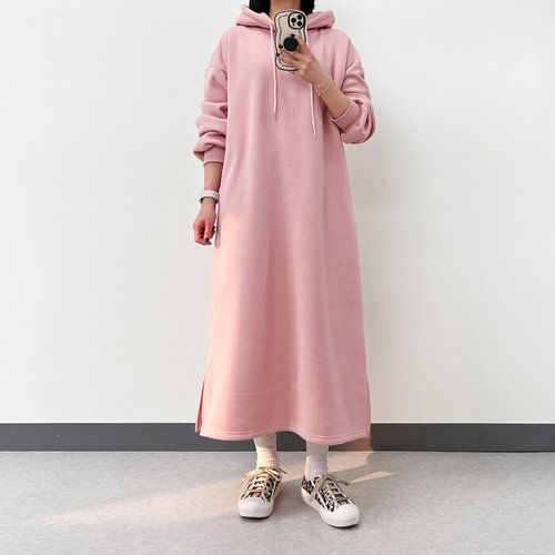 [엄지척]기모 롱원피스 데일리 후드 맨투맨 보온 등원룩 코디_19951588_667501