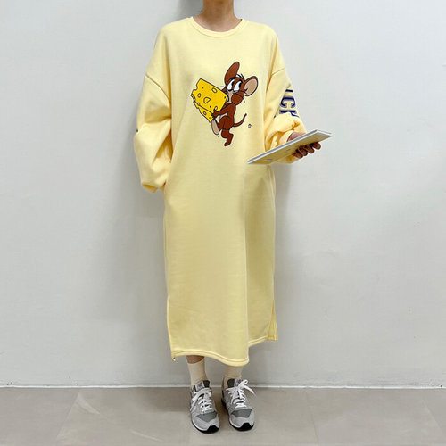 미즈큐즈 / 겨울 기모안감 치즈 레터링 맨투맨 롱 원피스 빅사이