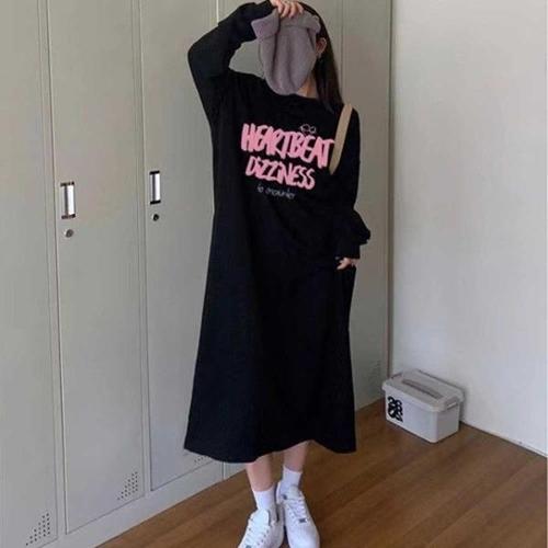 [엄지척]겨울 따뜻한 여성 기모 레터링 맨투맨 기본 롱 원피스_19913901_667501