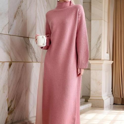 [다잇템][다잇템] 여자 박스 울니트 통소매 터틀넥 롱원피스_19701176_588872