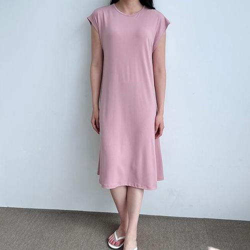 빅사이즈 모달 브이넥 반팔 롱원피스 홈웨어