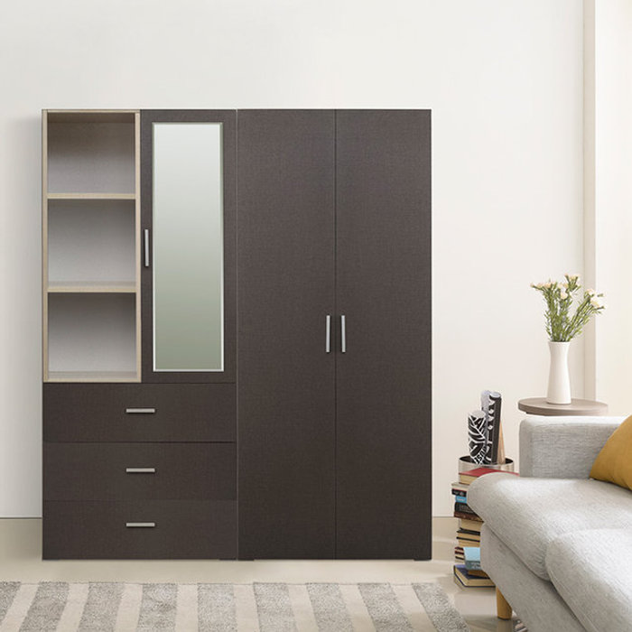 장인가구 [비밀특가] 장인가구 큐비 1600 옷장세트 (800 3단서랍 오픈 거울장+800 행거형)