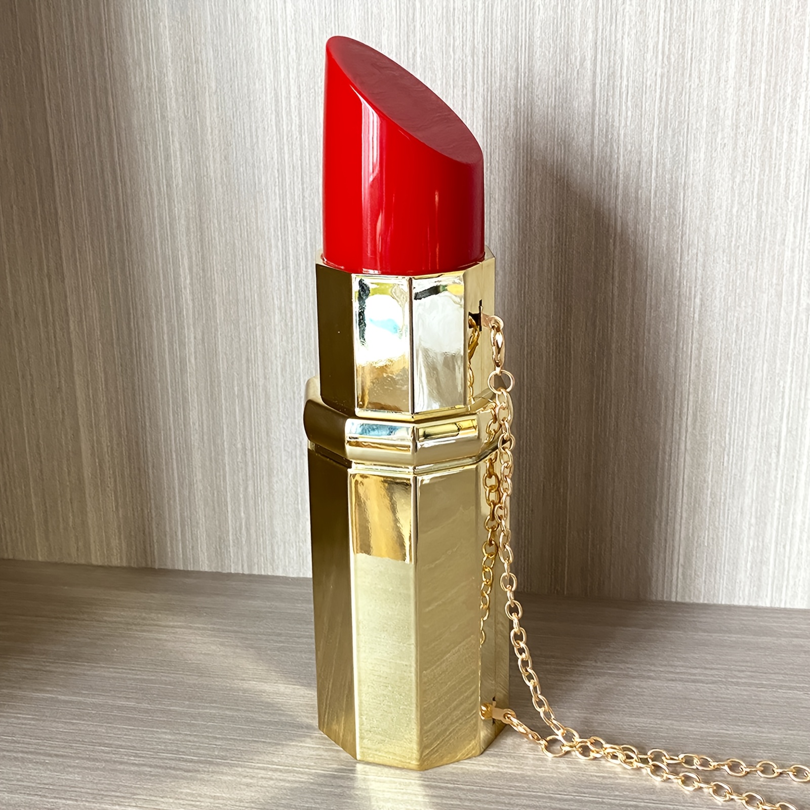 TEMU 1pc 골든 PVC 립스틱 크로스바디 가방, 끈이 분리 가능한 반짝이는 저녁 클러치, 자기 닫힘, 폴리에스터 안감, 단색 휴가 스타일 메신저 가방, 여성용 저녁 가방, 결혼식, 파티 및 공식 행사용 파티 액세서리, 간단한 우아한 디자인, 반짝이는 마감