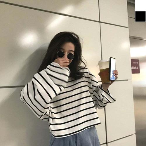 [셀럽하우스]스트라이프 PBCZ9215 면티셔츠 크롭 루즈핏 롱슬리브 BNC