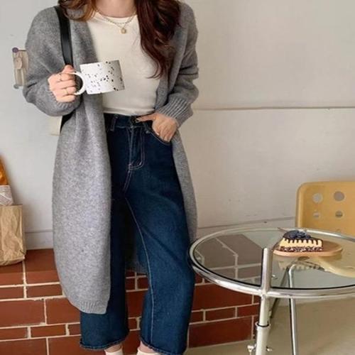 이유무무 NQ-425 여성 미디롱 스웨터 루즈핏 니트 가디건
