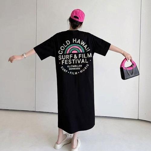 여성 반팔 티셔츠 루즈핏 라운드넥 여름 반팔티 롱티셔츠 롱원피스