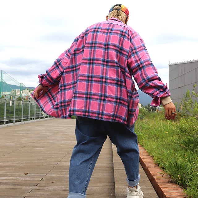 [유야]면 나염 박스 라운드 맨투맨 긴팔티 간절기 -TS0528H- 빅사이즈 루즈핏 여성 가을
