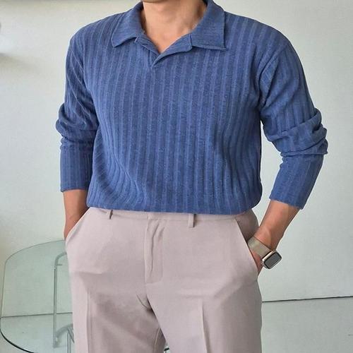 [옷자락] 남자 여자 커플티 오픈카라 단가라 오버핏 겨울 니트