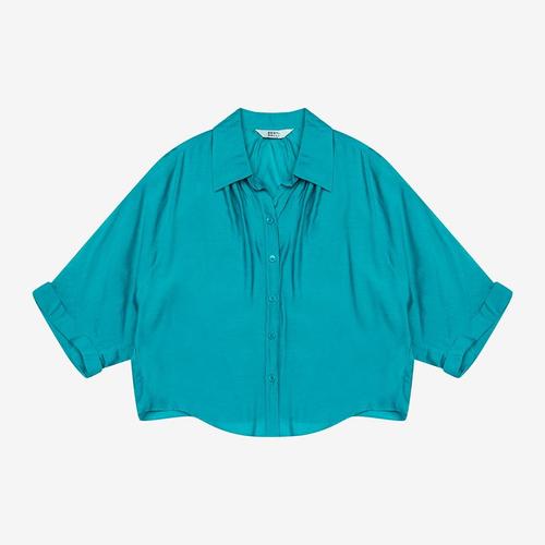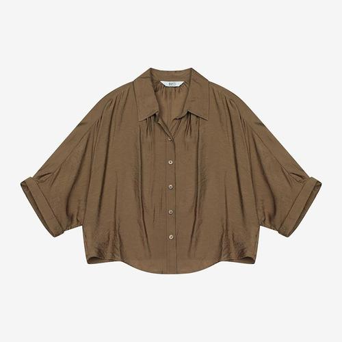 [막스까르띠지오]그린티 오픈카라 루즈핏 반팔 블라우스