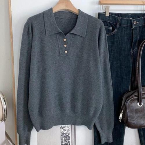 [옷자락]여성 긴팔 오픈카라 루즈핏 니트 스냅버튼