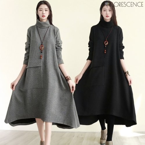여성 겨울 목폴라 꽈배기 니트 롱원피스 루즈핏 체형커버