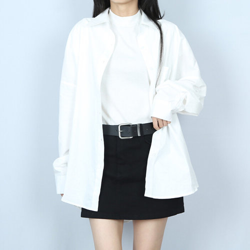 여자 언발 루즈 베이직핏 힙커버 셔츠
