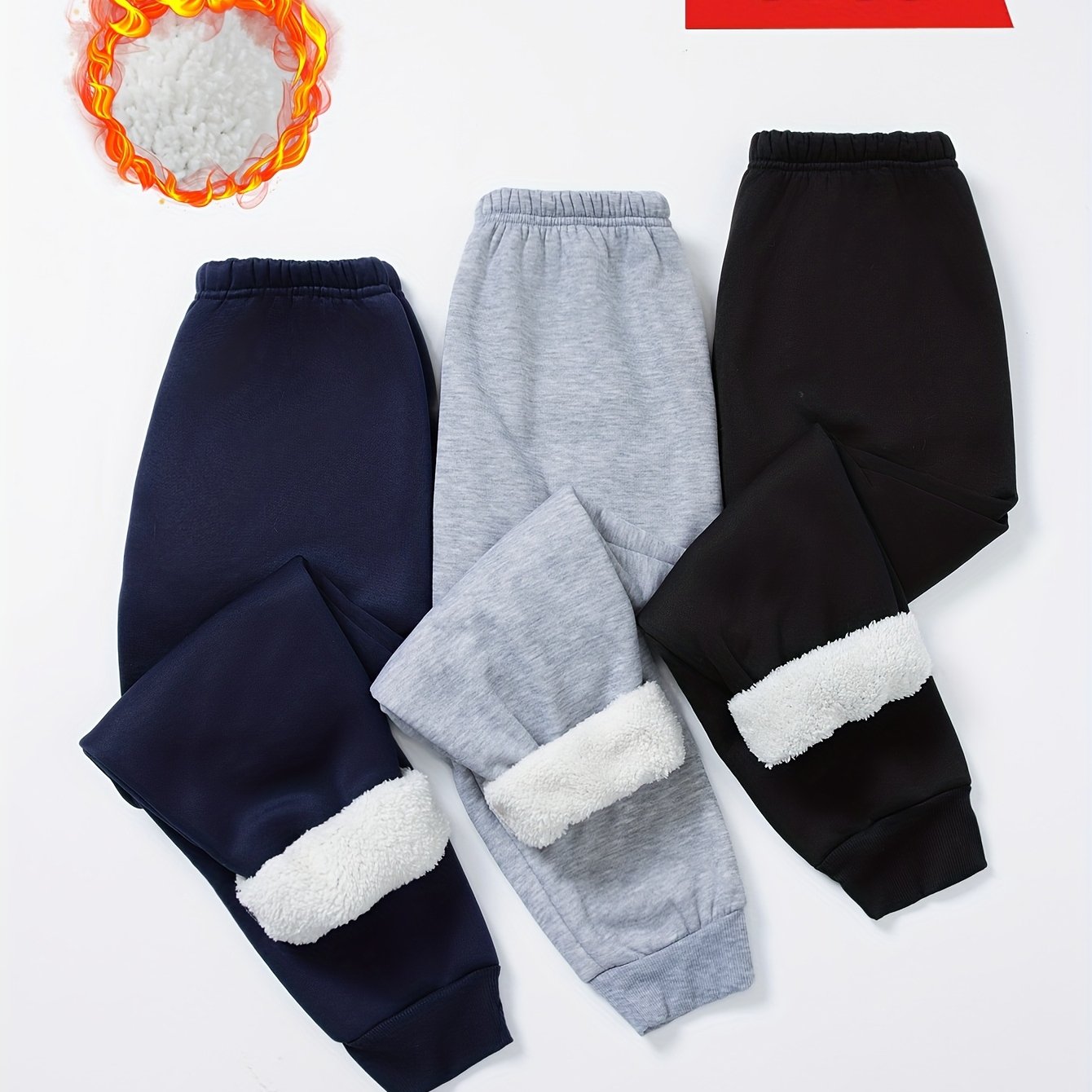 TEMU 3팩 남아용 보온 플리스 안감 조거 팬츠 - 신축성 있는 허리밴드, 루즈핏 스트레치 니트 바지 3세 이상, 네이비/블랙/그레이, 봄 & 가을 캐주얼 웨어, 야외 활동에 적합