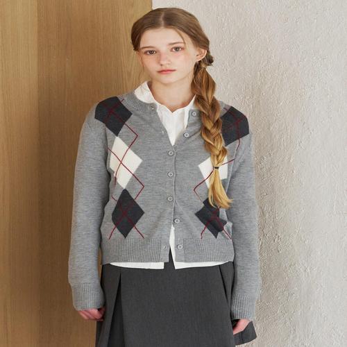 [르샵]아가일 패턴 라운드넥 울 니트 가디건 (DQ1CK008A)