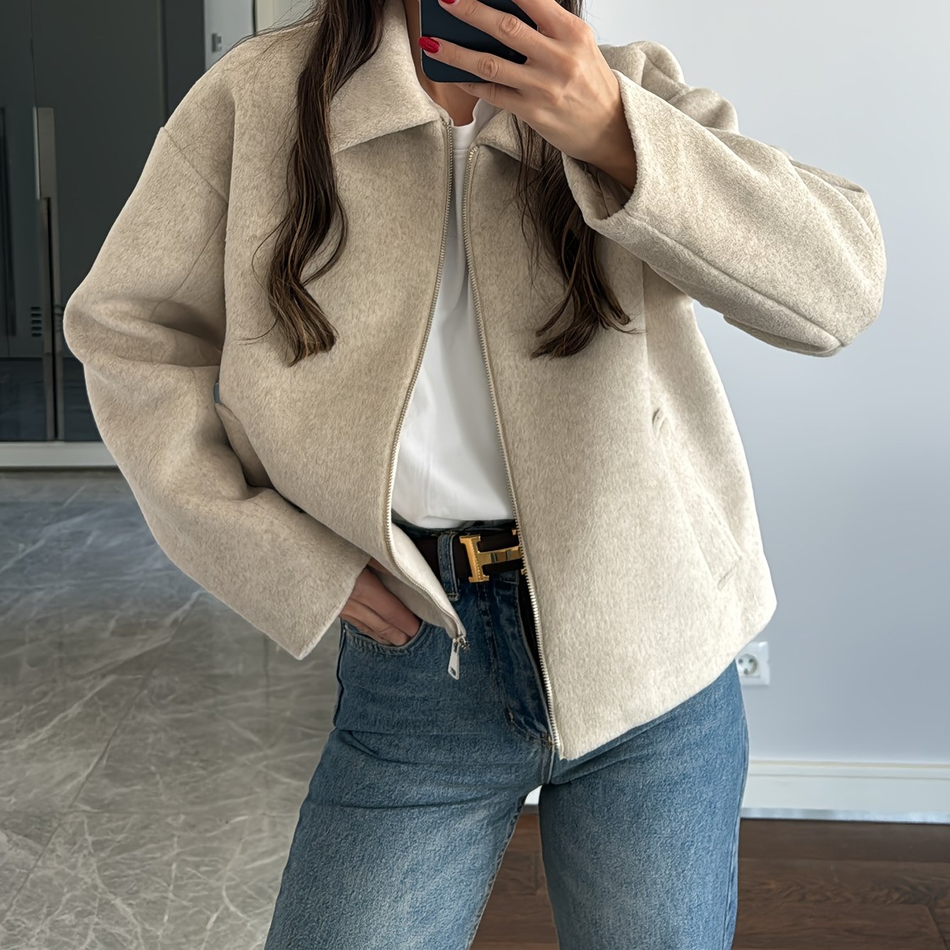 TEMU 여성용 우아한 숏 재킷 - 솔리드 컬러 지퍼 , 봄/가을용 테일게이트 코트, 오피스에서 파티까지 착용 가능, 세탁기 사용 가능한 루즈핏 아우터웨어 (신축성 없음)
