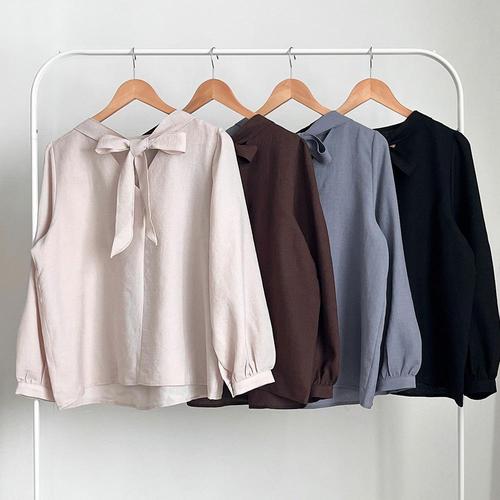 [옷자락] 여성 가을 리본넥 박시 블라우스