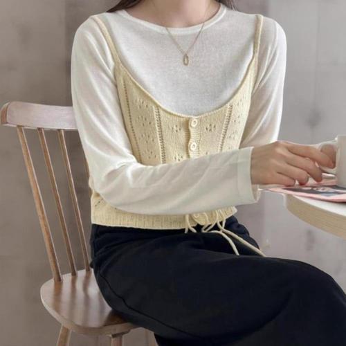 [비트코코] 여성용 러블리 리본포인트 레이어드 니트 조끼 3colors