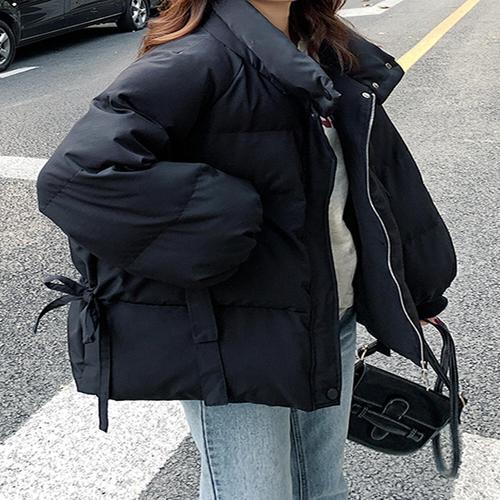 [위시드]리본 포인트 하이넥 집업 루즈핏 패딩 점퍼 (WIADJP002)