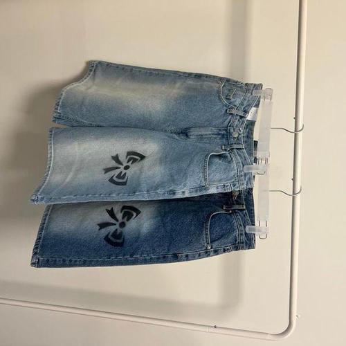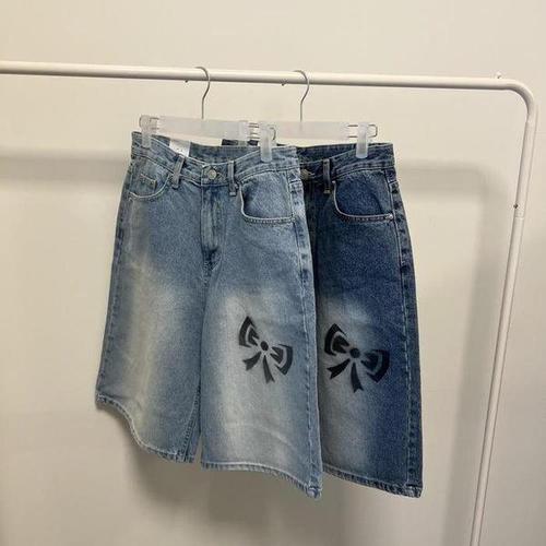 [옷자락] 여자 리본 프린트 2컬러 데님 버뮤다 반바지