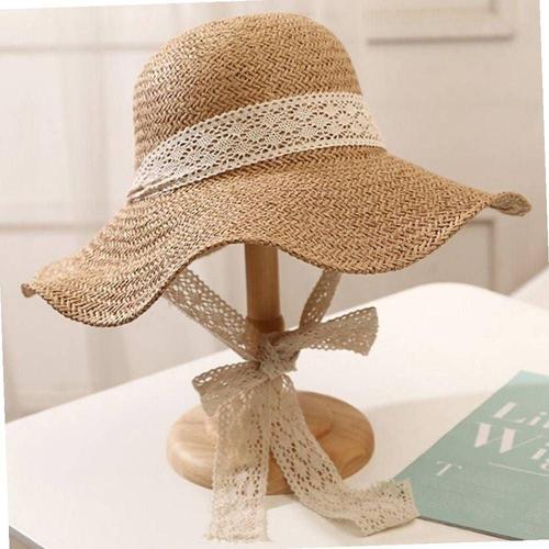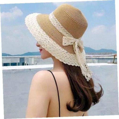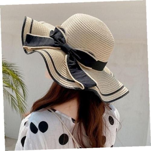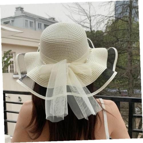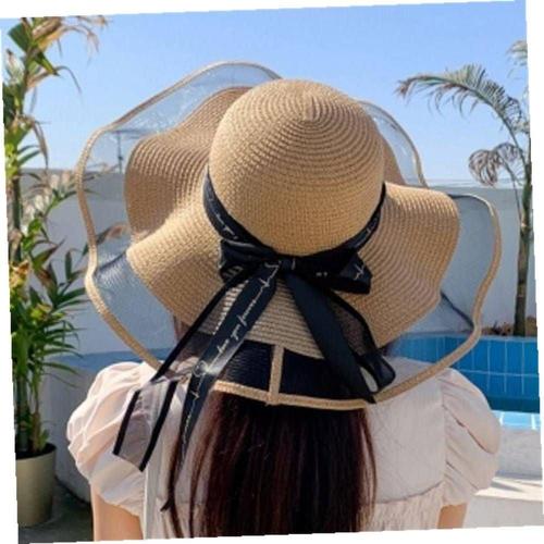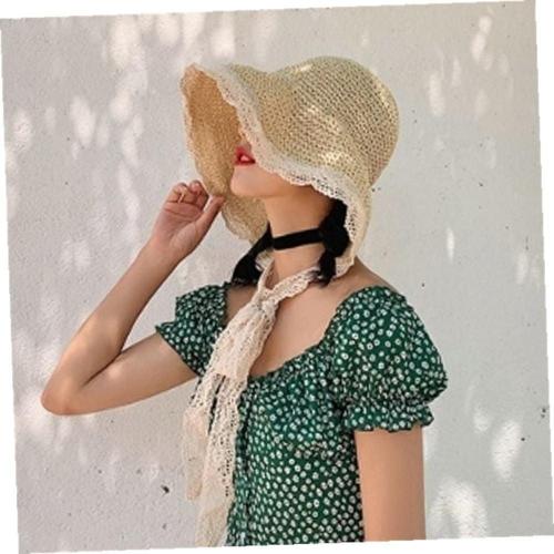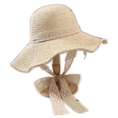 왕골모자 레이스 리본 비치모자 바캉스 밀짚모자 WFKPWVQ