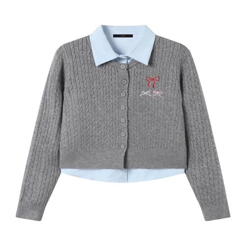 [르샵]카라 셔츠 세트 리본 자수 케이블 가디건 (DP4CK036A)