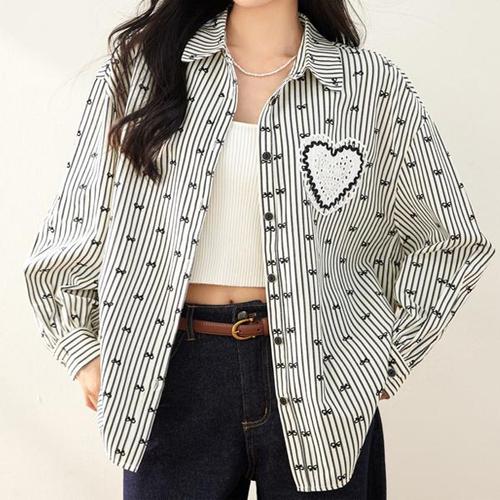 [패션시그널]리본도트 하트패치 셔츠블라우스 E3ADC5
