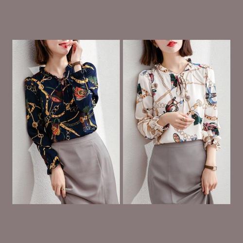 플라워 리본 블라우스 여성 패션 프린트 셔츠 WFL93XX