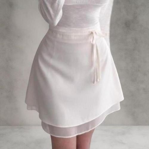 [다잇템_패션]여성 더블레이드 리본 시폰 쁘띠 넥타이 스커트